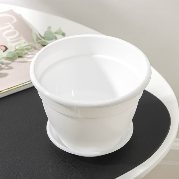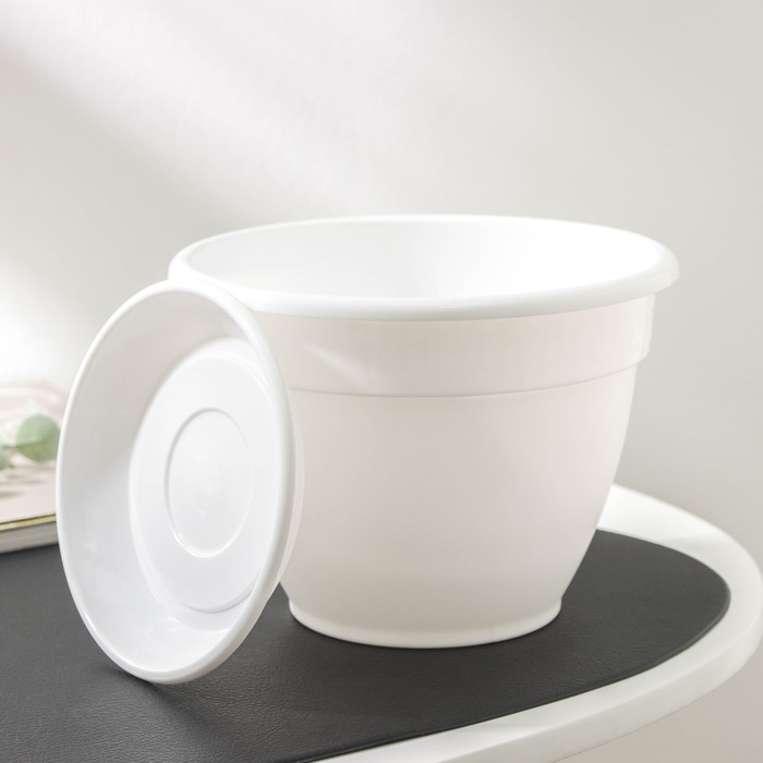 Горшок для цветов с поддоном «Антик», 1,6 л, d=17 см, пластиковый, цвет белый