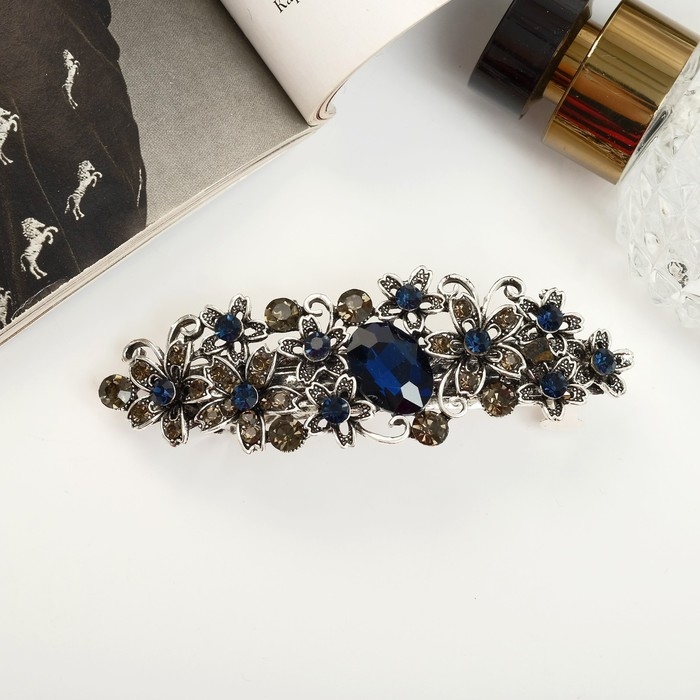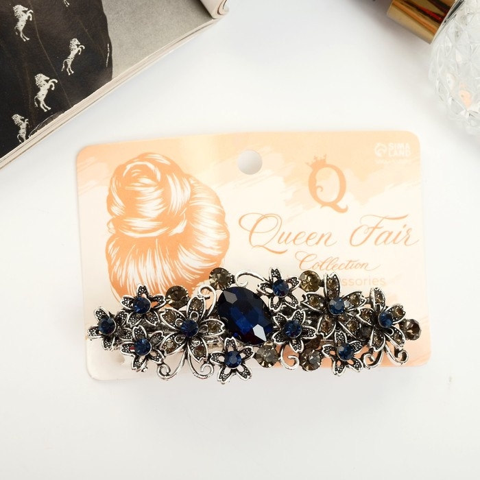Заколка-автомат для волос "Синий туман" цветочки, 9 см