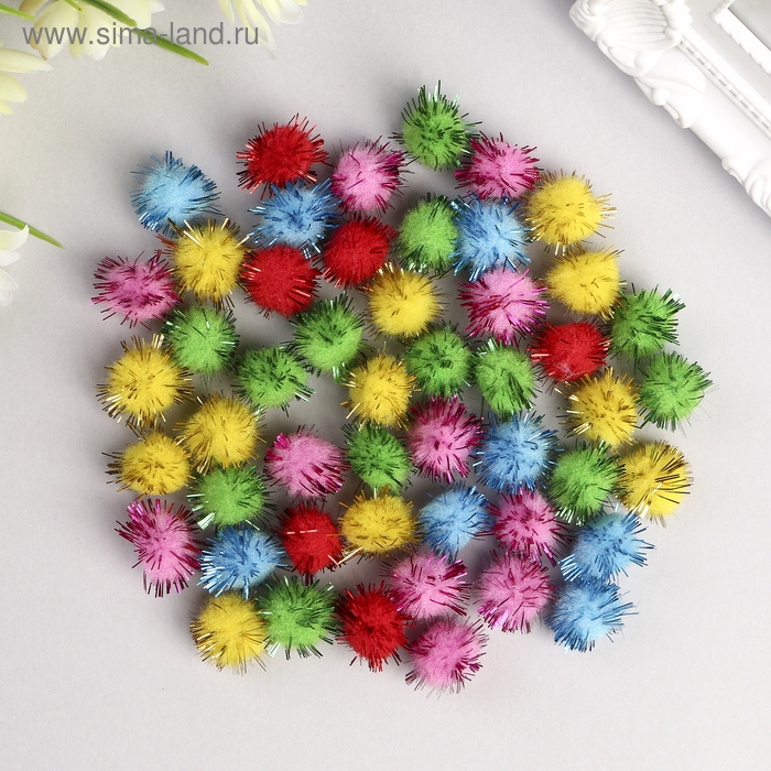 Помпоны для творчества, блестящие, 5 цветов, 15 мм, (набор 50 шт)