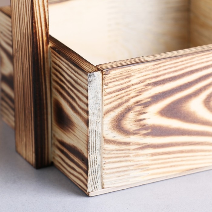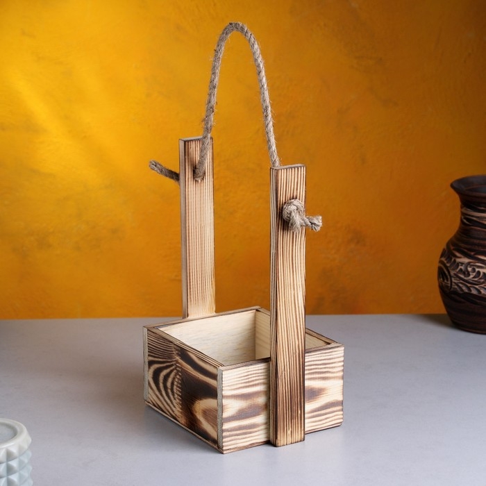 Кашпо деревянное 15×12×25 см "Ажур", прямоугольное, ручка верёвка, обжиг Дарим Красиво