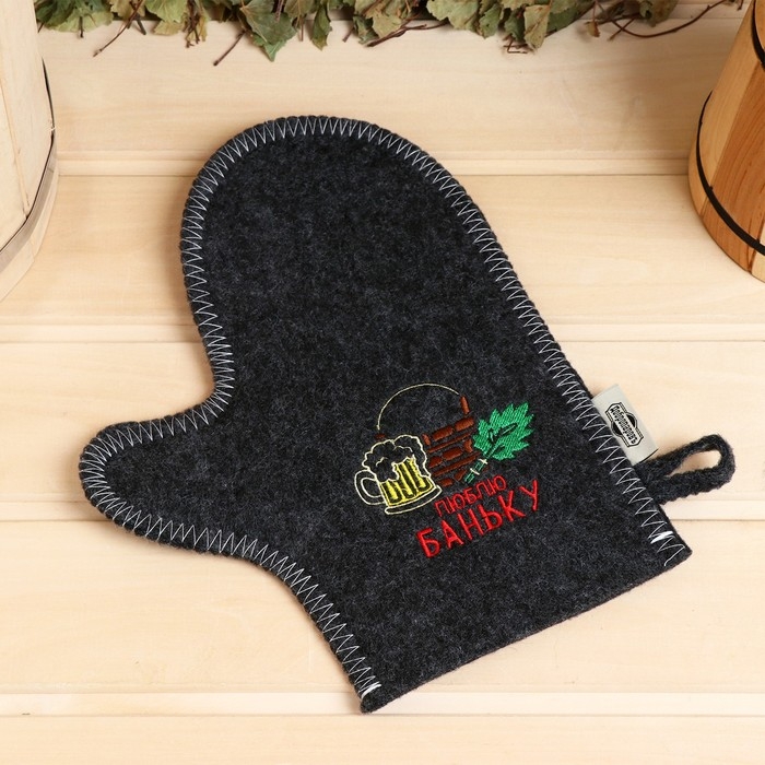 Рукавица для бани с вышивкой "Люблю баньку", первый сорт