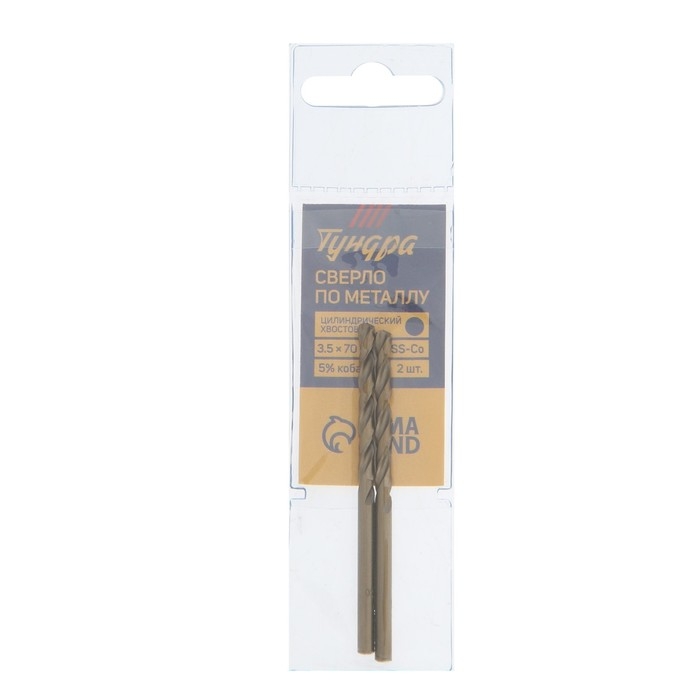 Сверло по металлу ТУНДРА, HSS-Co (5% кобальта), цилиндрический хвост., 3.5 мм, 2 шт.