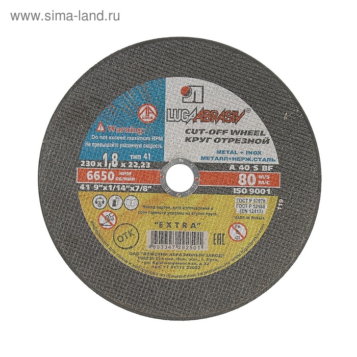 Круг отрезной по металлу+нерж.стали "Луга", A 40 S BF 80, 14 А БУ, 230х1.8х22 мм