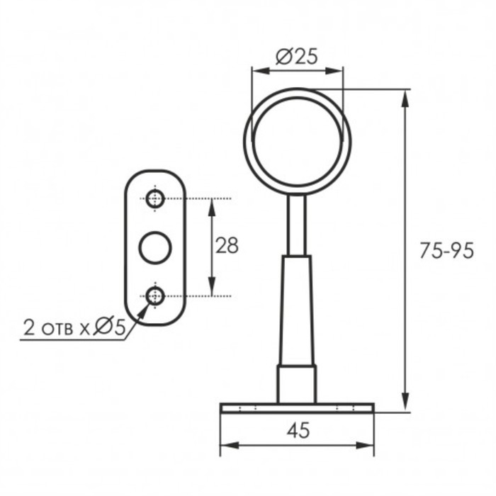 Держатель R-50 R дистанционный регулируемый сквозной d-25 30/180