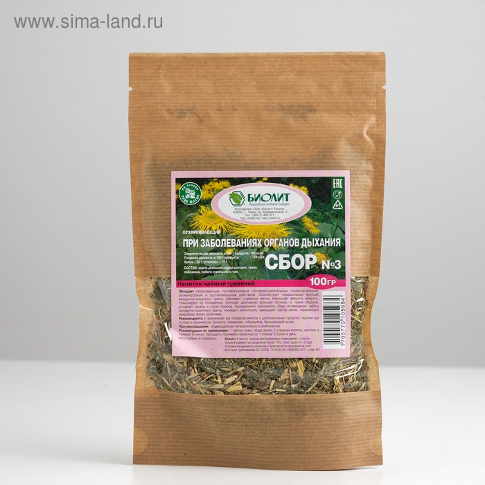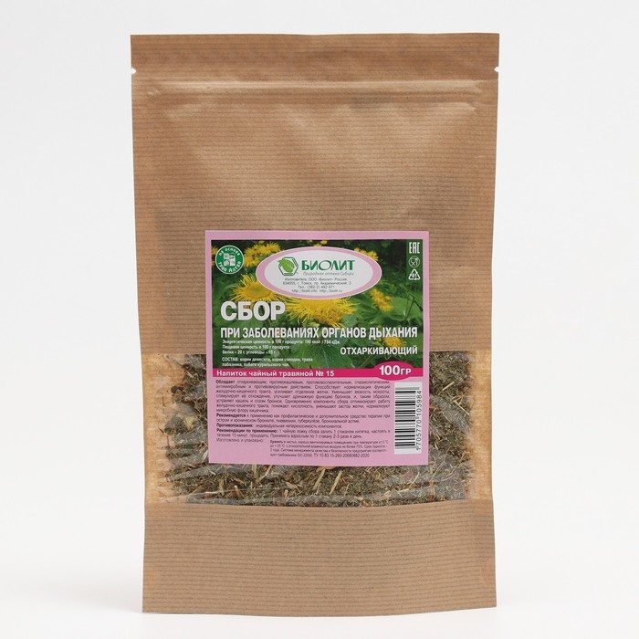 Напиток чайный травяной "Сбор при заболеваниях органов дыхания" Отхаркивающий 100 г