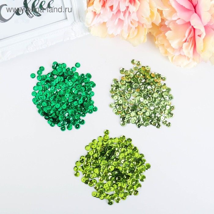 Пайетки для творчества "Классика", оттенки зеленого, 6 мм, 30 г