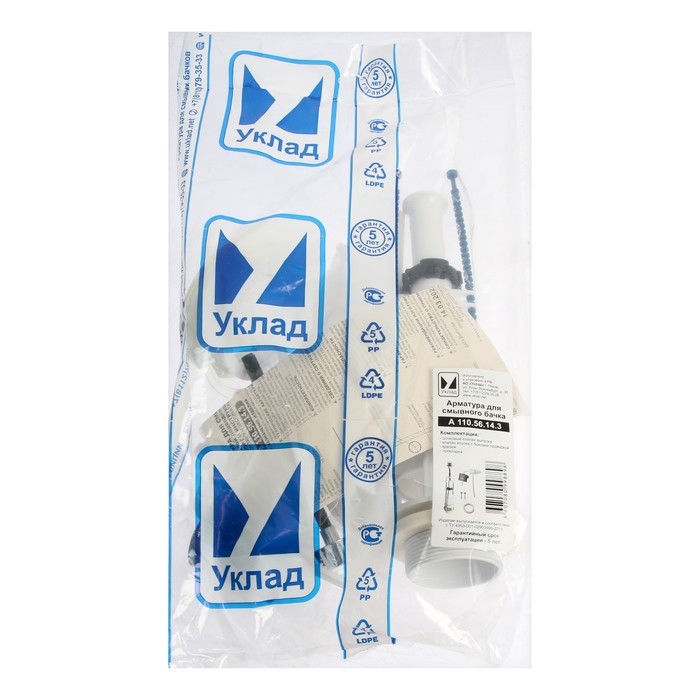 Арматура для смывных бачков "УКЛАД" - 2, с боковой подводкой 1/2", шток, хром