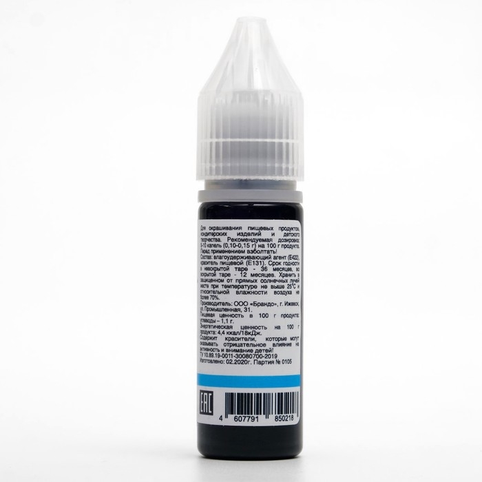 Область применения: для окрашивания продуктов питания и различных кондитерских изделий (теста, мастики, айсинга, марципана, крема и так далее), а также для детского творчества (мыловарение, слаймы).