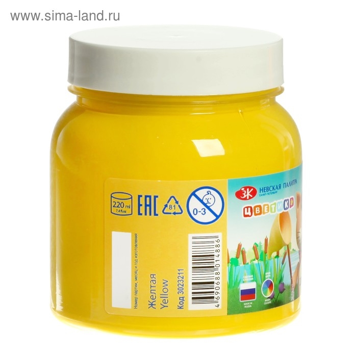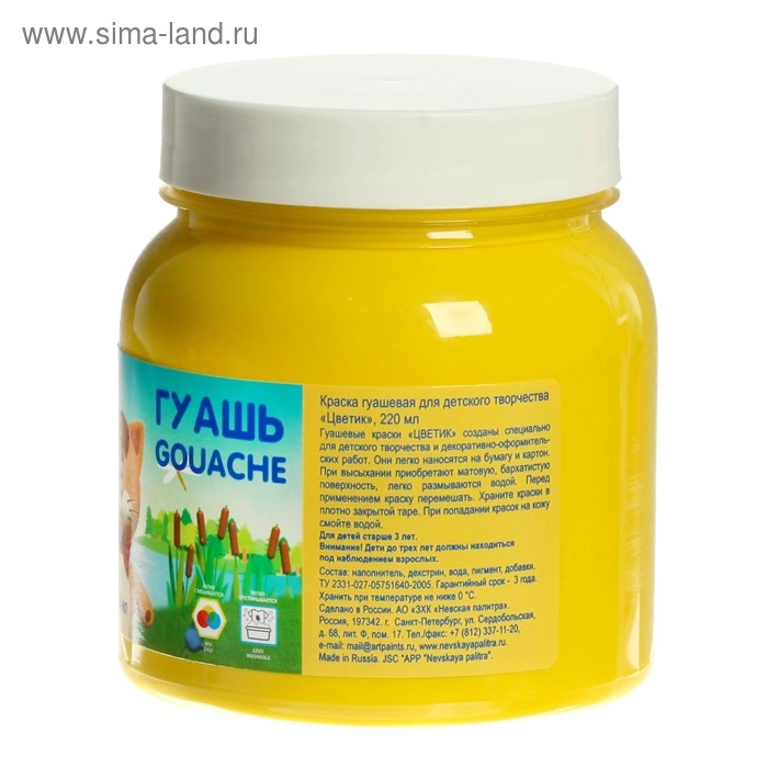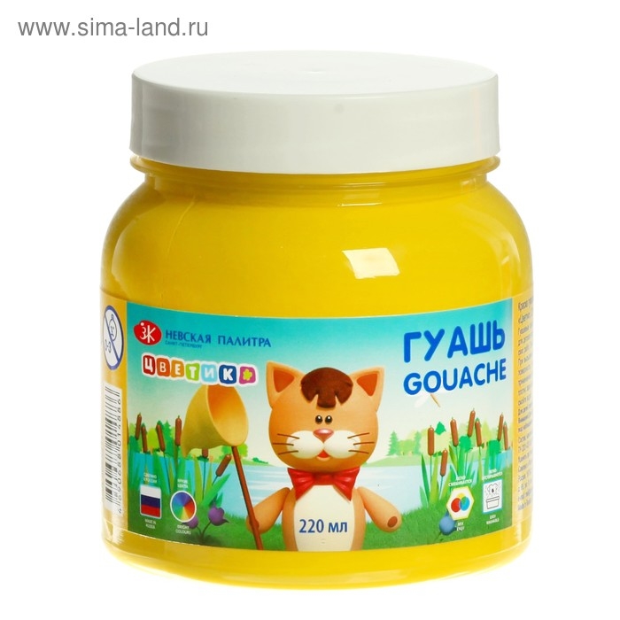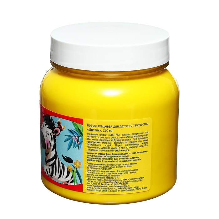 Гуашь в банке 220 мл, ЗХК "Цветик" жёлтая (3023211)