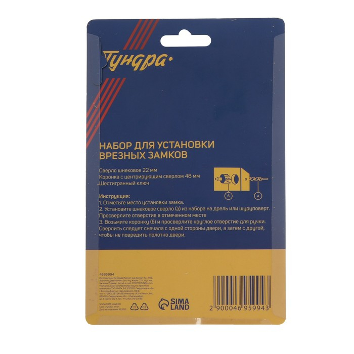 Набор для установки врезных замков ТУНДРА, сверло шнековое 22 мм, коронка 48 мм