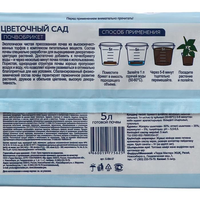Почвобрикет Цветочный сад, 5 л. "БиоМастер"