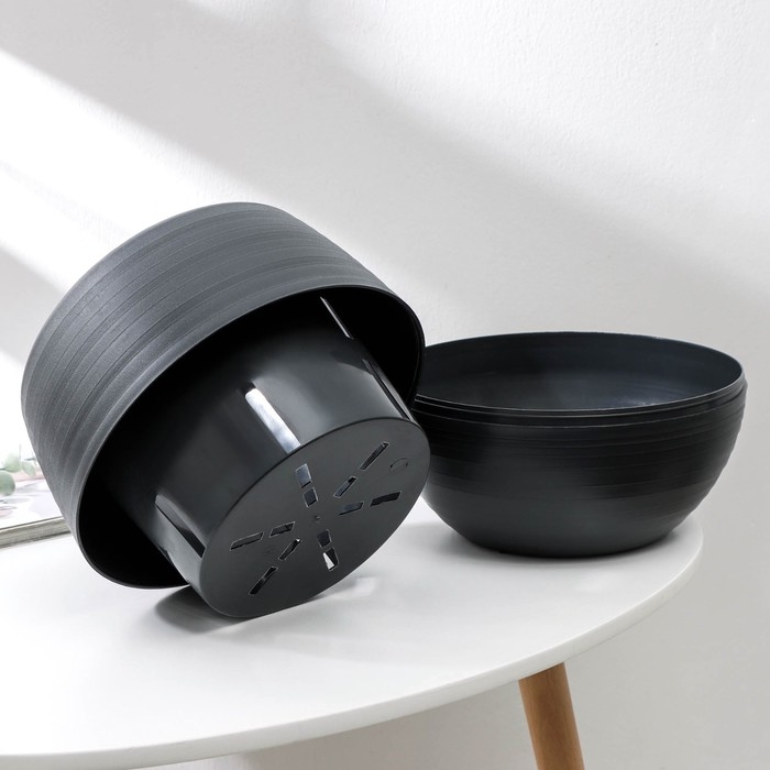 Горшок для цветов с поддоном «Япония», 2 л, цвет графитовый