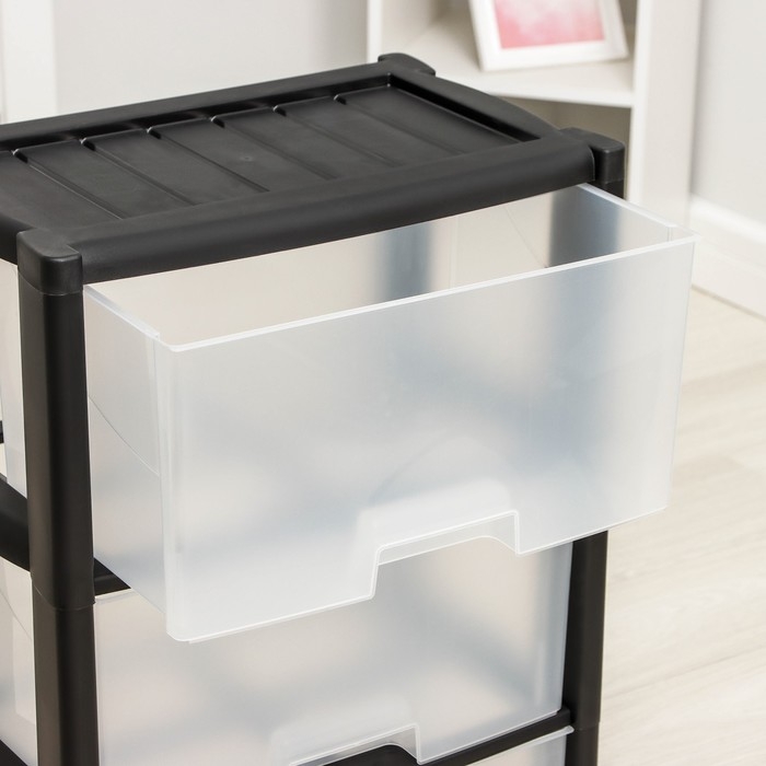 С помощью практичного пластикового комода вы правильно организуете хранение вещей. Изделие имеет жёсткую конструкцию за счёт цельных боковых стенок. Отсутствие острых углов делает его безопасным для ребёнка. Комод изготовлен из экологически чистого материала, не содержит вредных веществ.