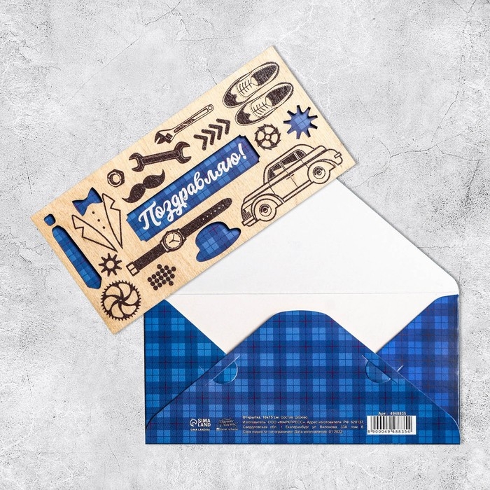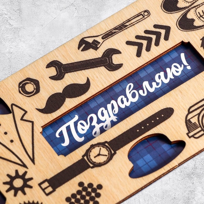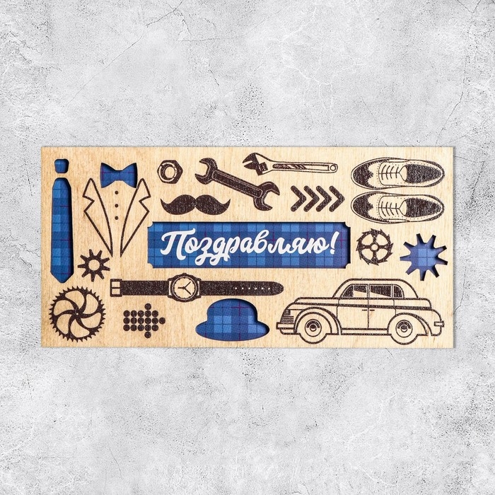 Конверт для денег с деревянным элементом "Поздравляю!" мужские аксессуары, 16,5 х 8 см