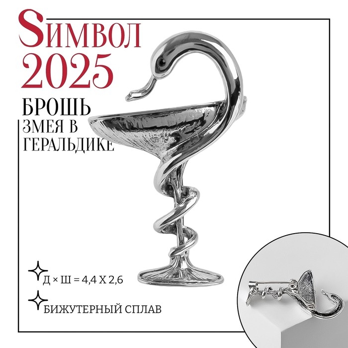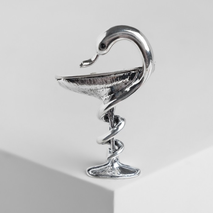 Брошь «Змея в геральдике» медицина, цвет чернёное серебро