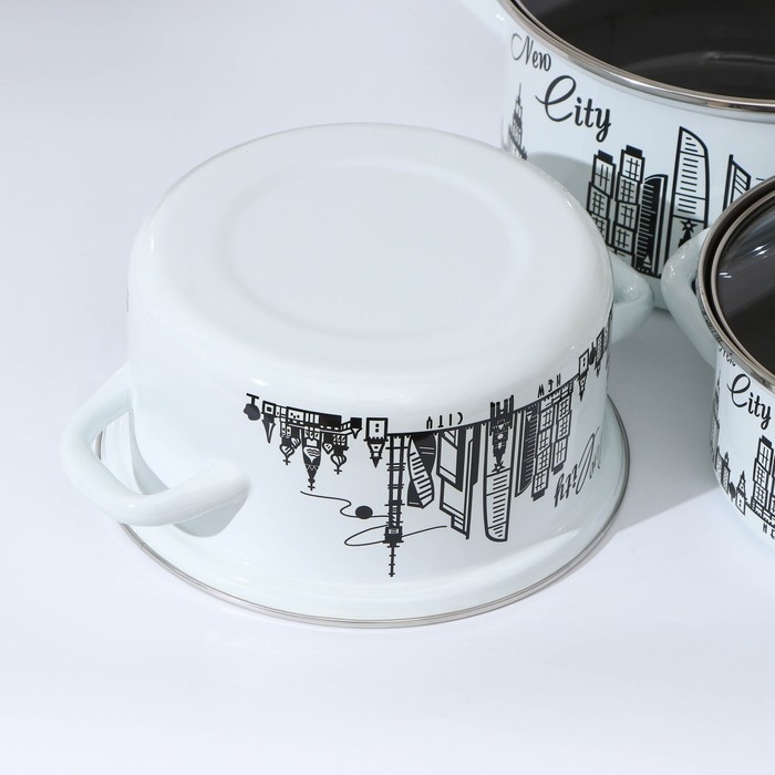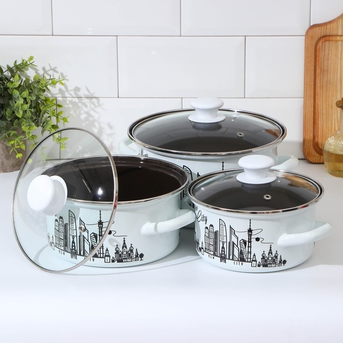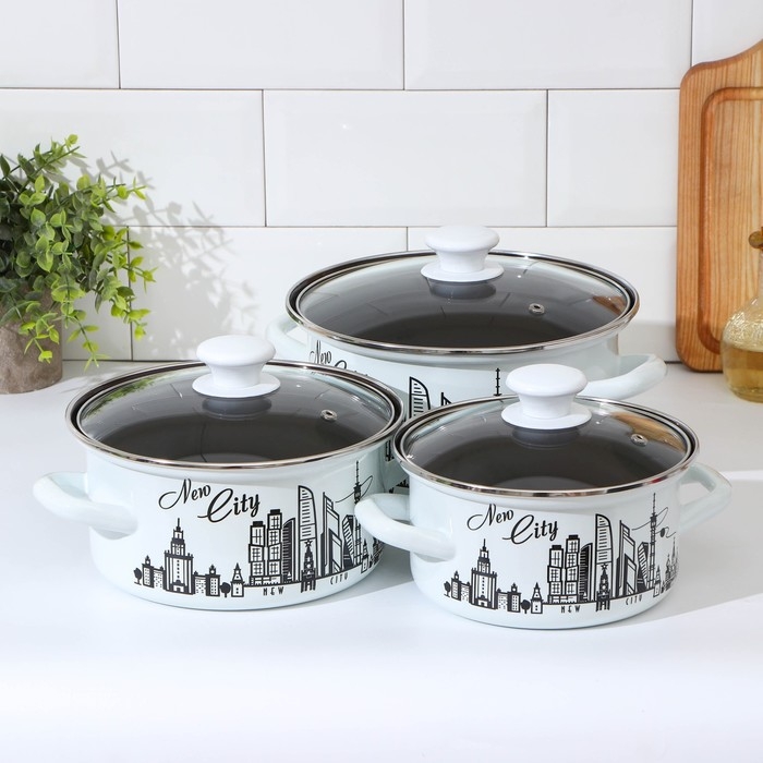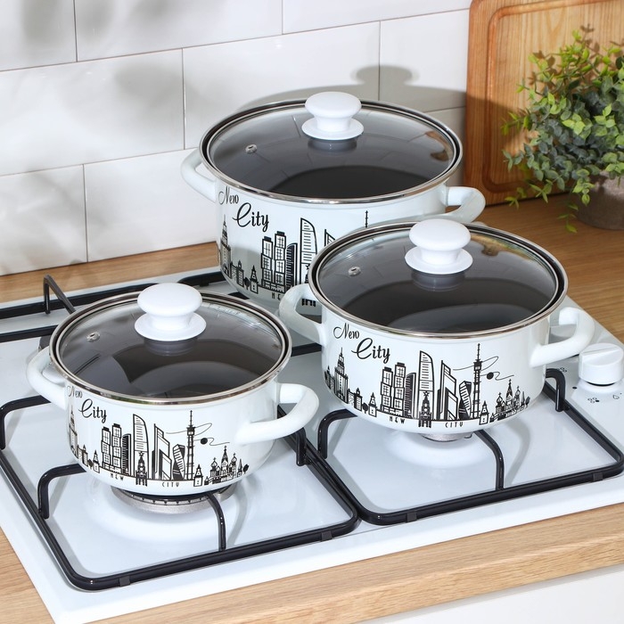 Набор эмалированных кастрюль «Новый город», 3 предмета: 1,5 л, 2,3 л, 3 л, индукция