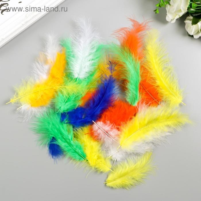 Перья декоративные страусиные, 10-12 см (набор 24 шт) 6 цветов, яркие, ассорти