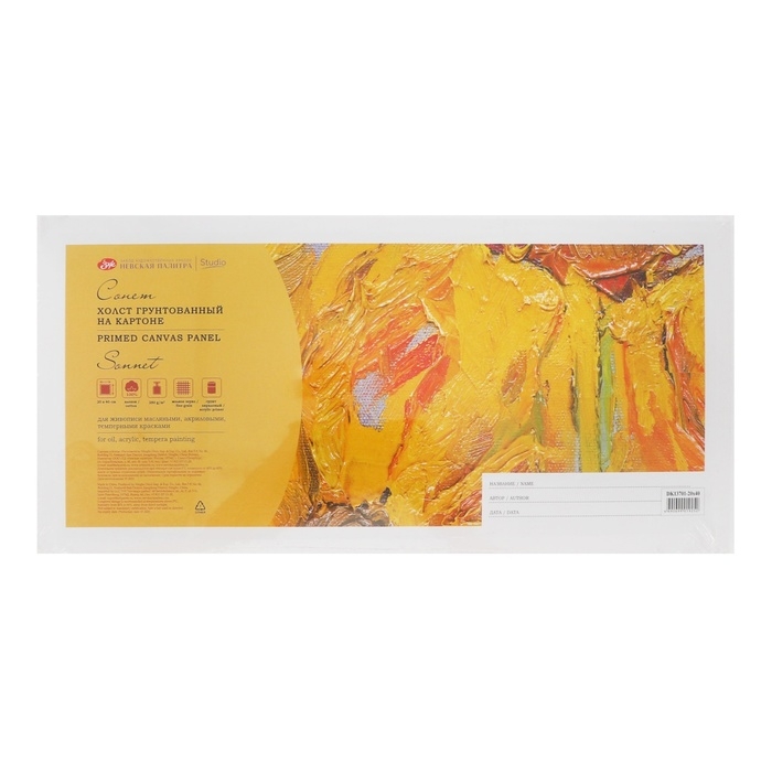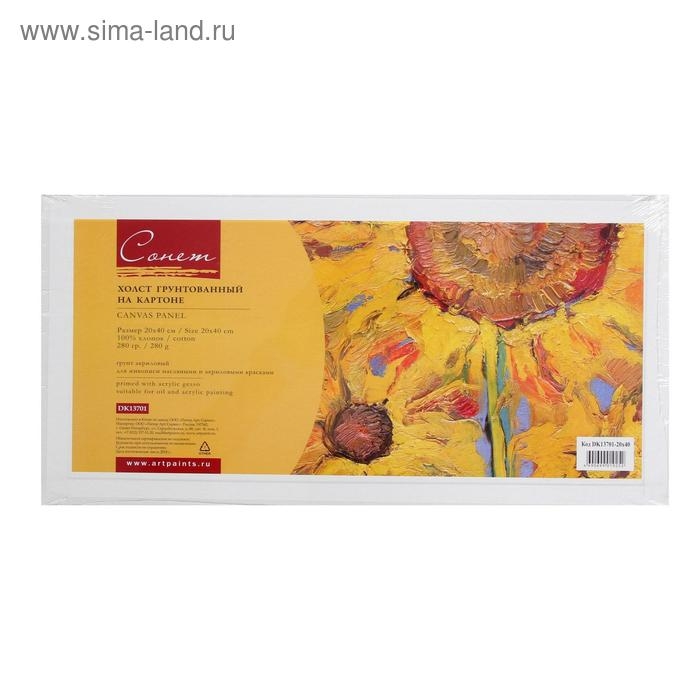 Холст на картоне 20 х 40 см, хлопок 100%, 3.0 мм, акриловый грунт, мелкозернистый, ЗХК "Сонет"