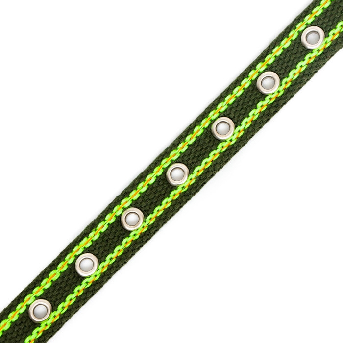 Ошейник брезентовый безразмерный двухслойный, 50 х 2 см, ОШ 22-45 см, хаки/зелёный