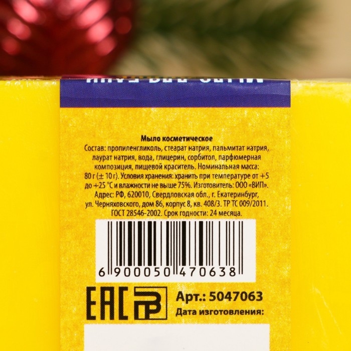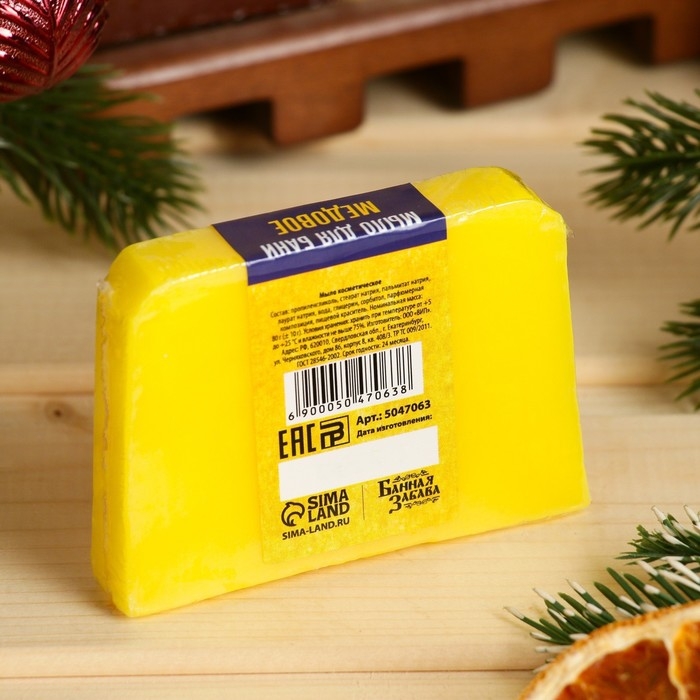 Новый год. Мыло СПА - уход для бани и сауны "Новогоднее" медовое, Банная Забава 80 гр
