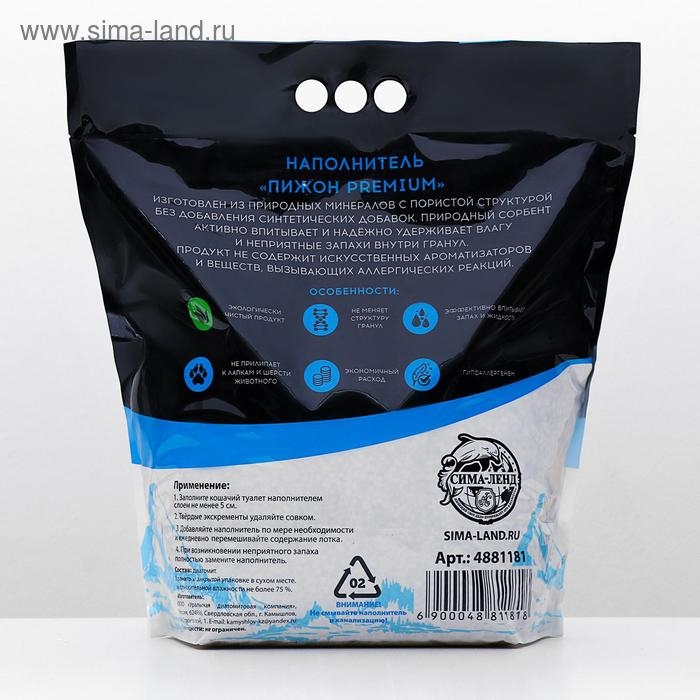 Наполнитель минеральный впитывающий "Пижон Premium", для длинношерстных кошек, 5 л