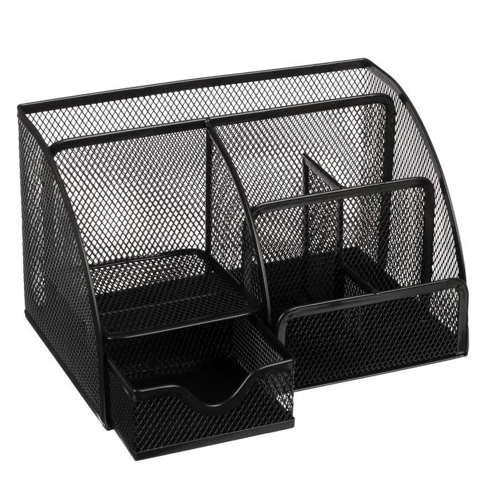 Подставка для канцелярских принадлежностей, 5 отделений, сетка, металл, чёрная
