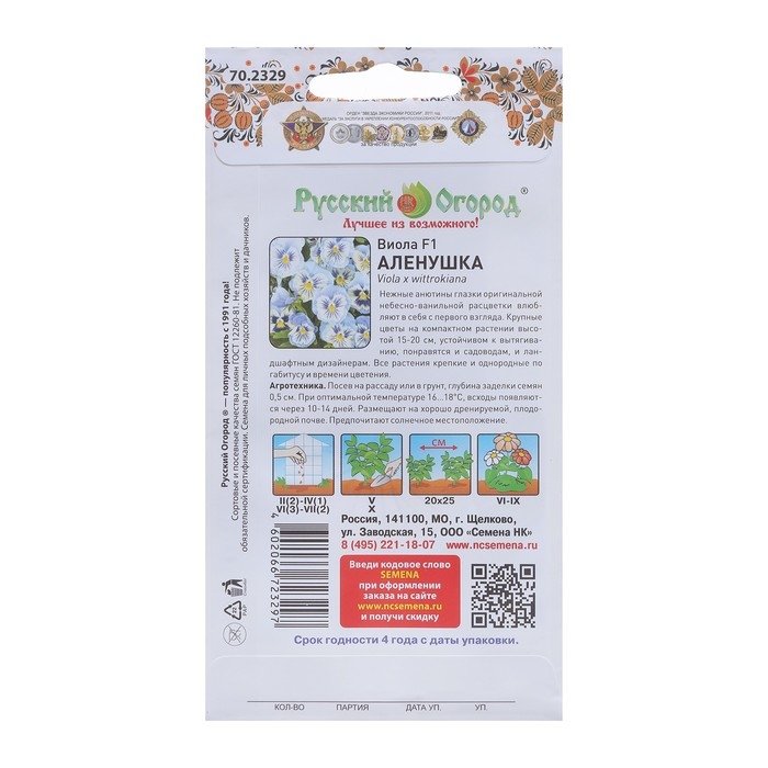 Семена цветов Виола "Махровое кружево", ц/п, 4 шт.