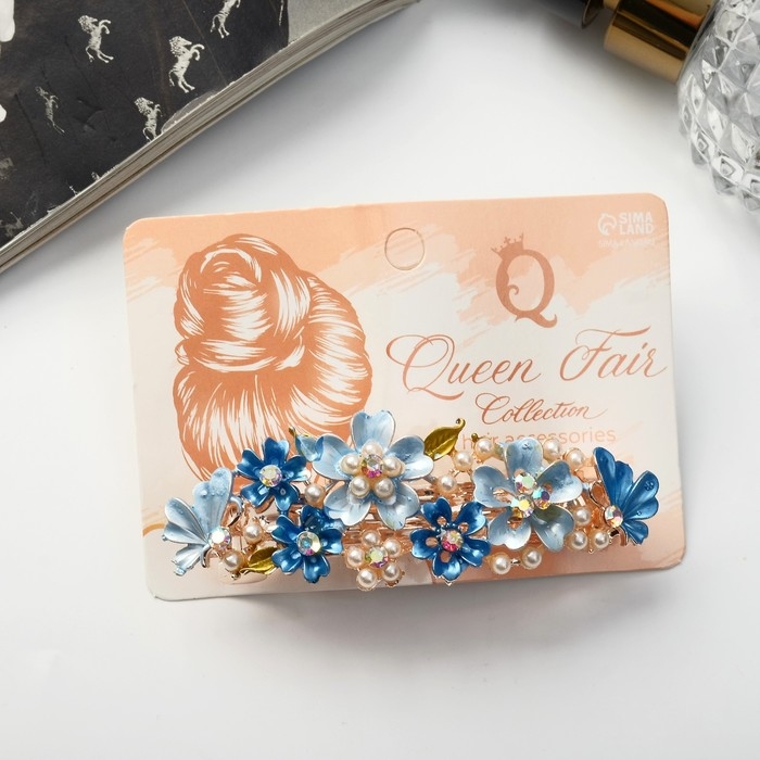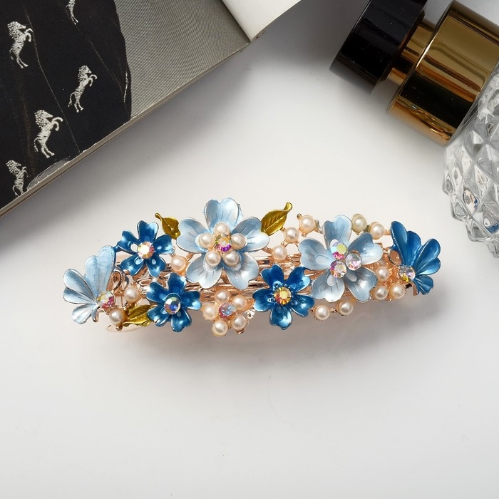 Заколка-автомат для волос "Вальс цветов" жемчуг, 9 см