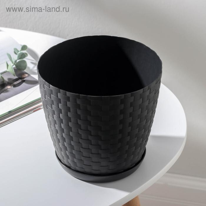 Горшок для цветов с поддоном «Ротанг», 1,2 л, цвет графит