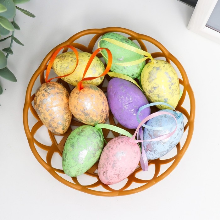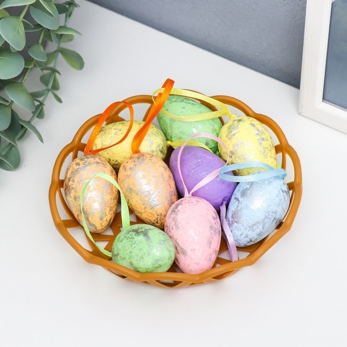 Декор пасхальный "Яйцо с лентой" набор 9 шт яйцо 4,5х3 см, МИКС 3,7х14,5х14,5 см