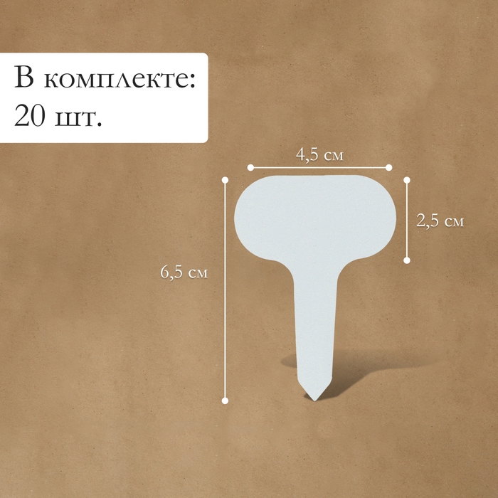 Бирки садовые для маркировки, 6,5 × 5 см, набор 20 шт., пластик, белые, Greengo