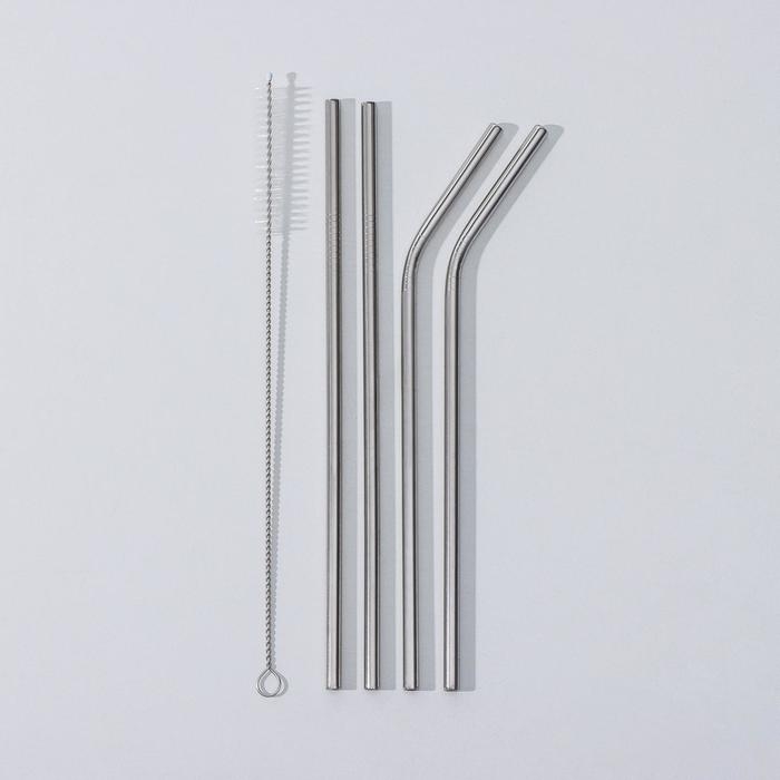 Набор металлических трубочек Ice, 4 шт, 21 см, с ёршиком