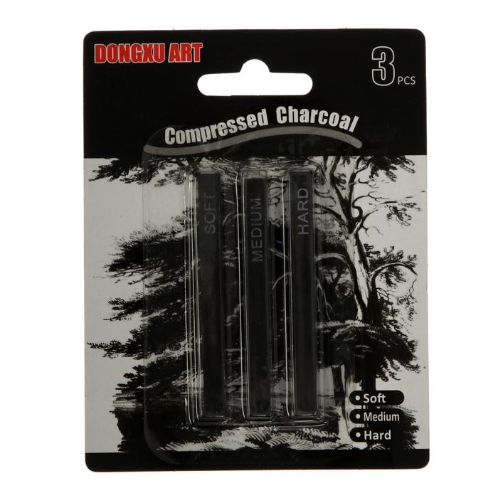 Уголь прессованный, чёрный, 3 штуки в наборе (1 шт - мягкий, 1 шт - средний, 1 шт - твердый)