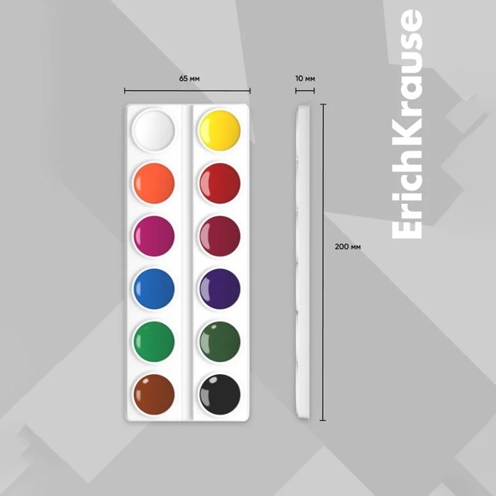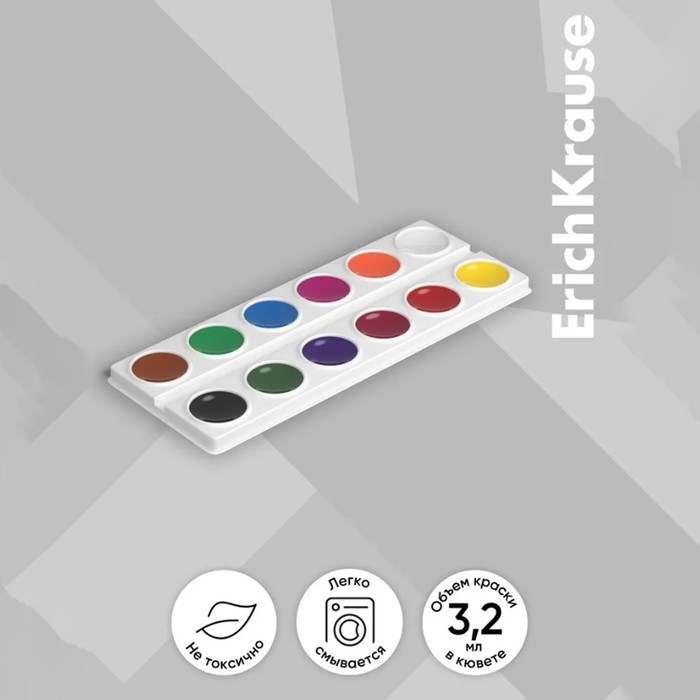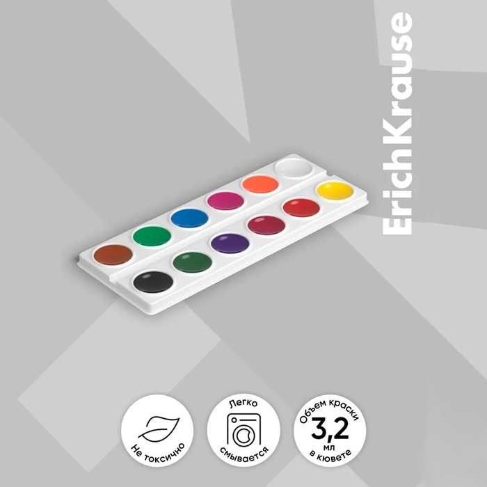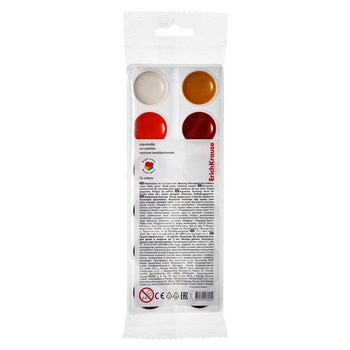 Акварель 12 цветов, ErichKrause, в мягком пластике, без кисти, экономичная упаковка, пакет с европодвесом