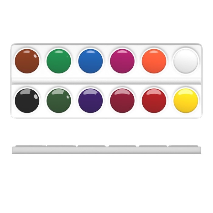Краски акварельные, в кюветах, с кистью, 12 цветов