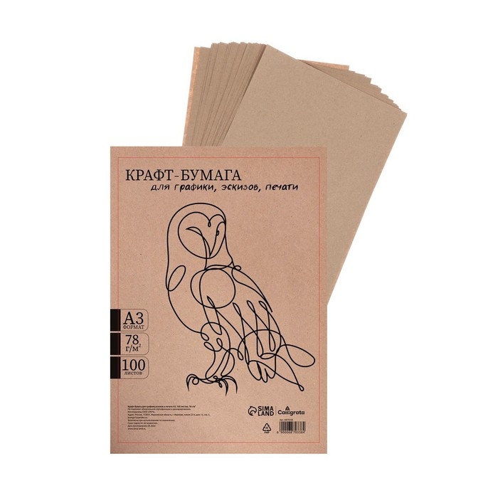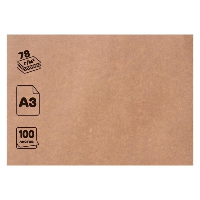 Упаковка содержит 100 листов из крафт-бумаги формата А3 (297 х 420 мм). Листы высокой плотности 78 г/м2 устойчивы к истиранию и обеспечивают чистую реалистичную передачу цвета. Выполнены в коричневом цвете. Упаковка - пакет.