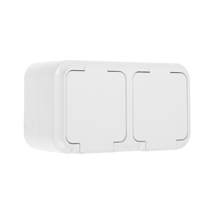 Розетка BYLECTRICA РА16-303 Пралеска, 16А, двухмест., наруж., с з/к, крышка, IP54, белая