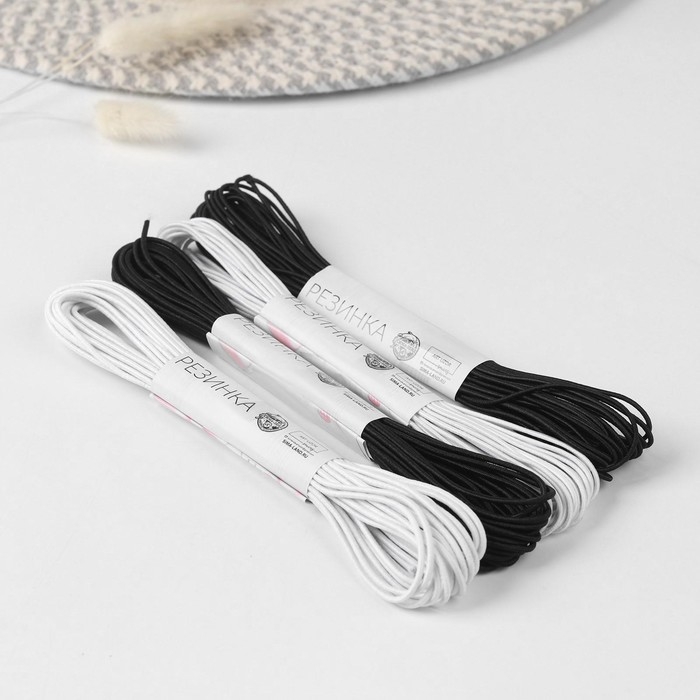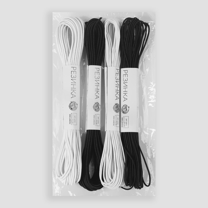 Резинка шляпная, 2 мм, 10 ± 0,5 м, 4 шт, цвет чёрный/белый