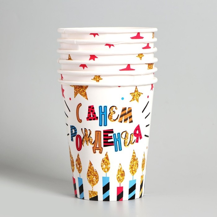 Набор бумажной посуды одноразовый С днём рождения», свечи и звёзды