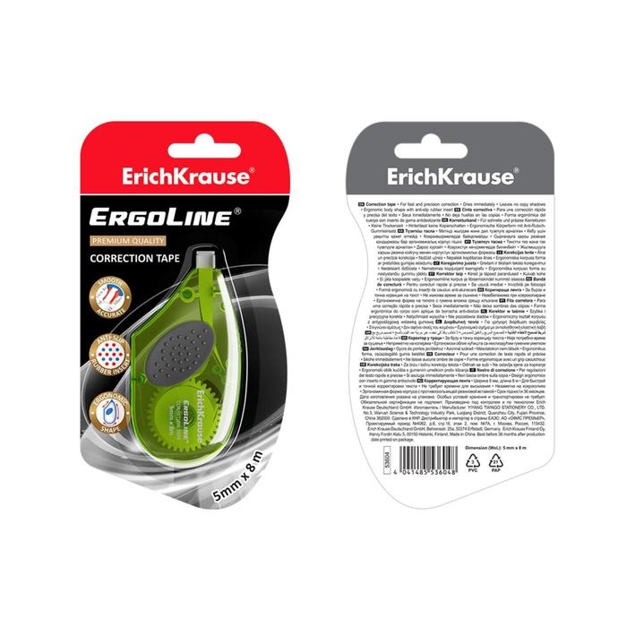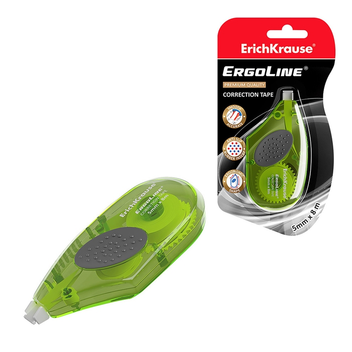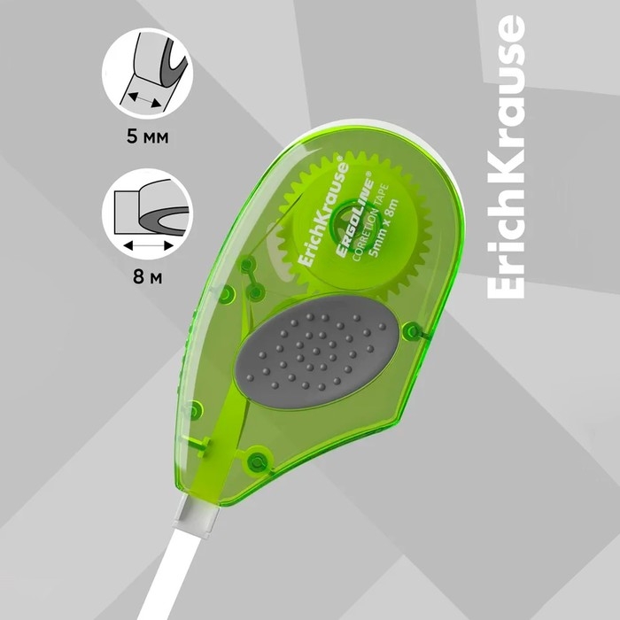 Корректирующая лента 5 мм х 8 м, ErichKrause ErgoLine, с резиновой вставкой, корпус салатовый, блистер