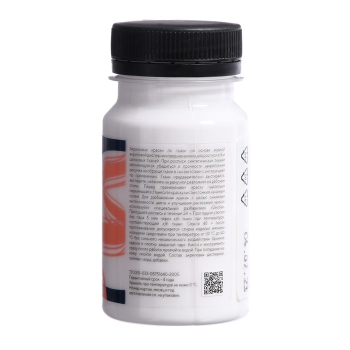 Краска по ткани, банка 50 мл, ЗХК Decola, Белая 4128104, (акриловая на водной основе)