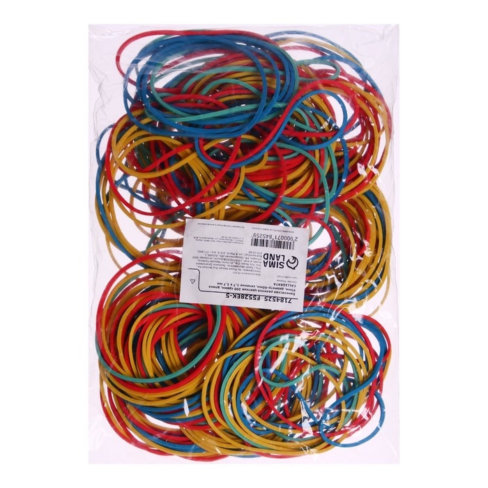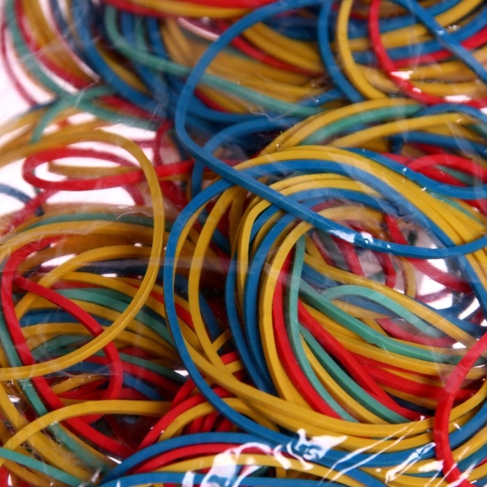 Банковская резинка, 200 г, диаметр 60 мм, длина 95 мм, сечение 1,7 х 1,7 мм, микс, в пакете