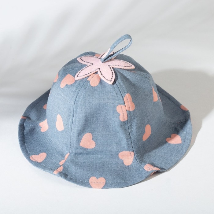 Панама для девочки MINAKU с сердечками, цвет синий, р-р 48