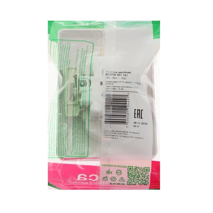 Розетка двойная SE Blanca, 16 А, 250В, встраиваемая, с з/к, шторки, IP20, белая, BLNRS001121