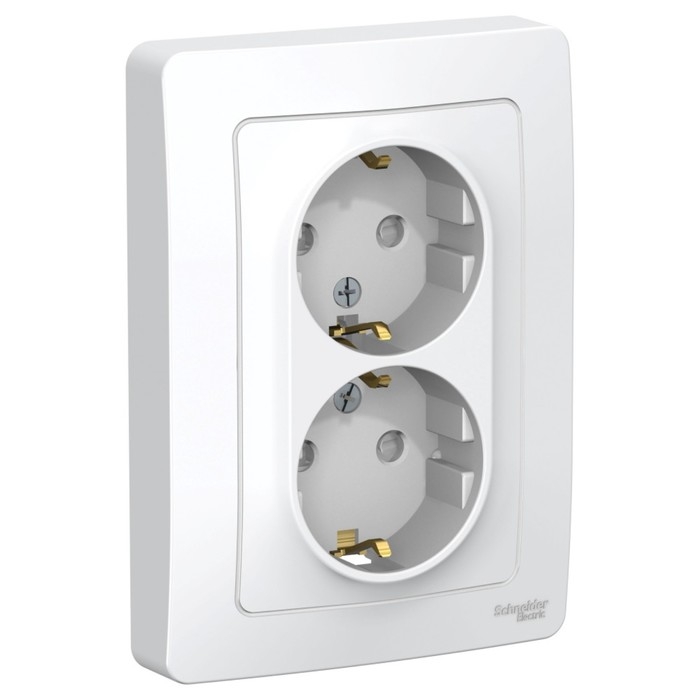 Розетка двухместная Schneider Electric Blanca с заземлением и шторками предназначена для сетей до 250 В (~), на ток до 16 А. Двухместная розетка позволяет подключить два устройства в одном месте. Шторки и заземление обеспечивают дополнительную безопасность при косвенном прикосновении.