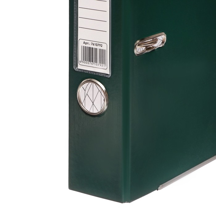 Папка-регистратор А4, 50 мм, Calligrata, ПВХ, тиснение "лен", металлическая окантовка, карман на корешок, собранная, зеленая, микс