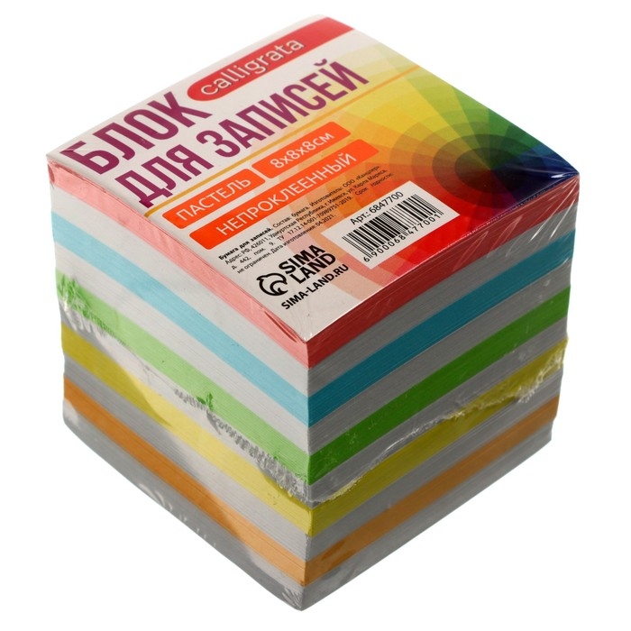 Блок бумаги д/записей 8*8*8 Calligrata Зебра: 5цв пастель 80г/м2, белая 65г/м2