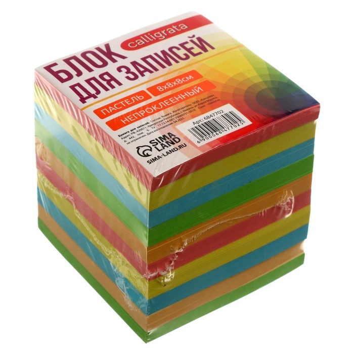 Блок бумаги д/записей 8*8*8 Calligrata цветн пастель, 80г/м2