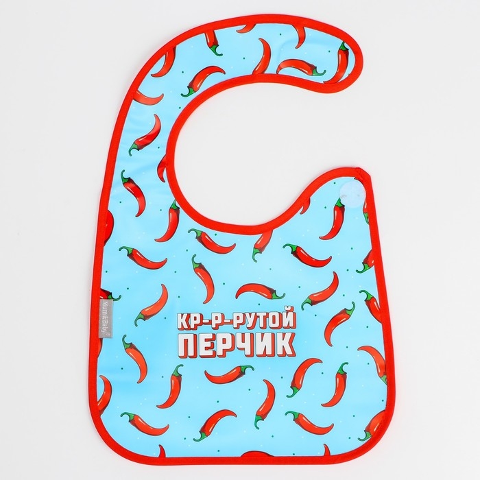 Нагрудник для кормления «Перчик» непромокаемый на липучке, с карманом