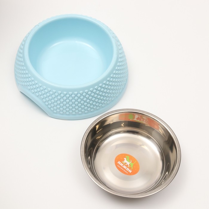 Миска металлическая на пластиковом основании 400 мл, 18,5 х 18,5 х 6 см, голубая